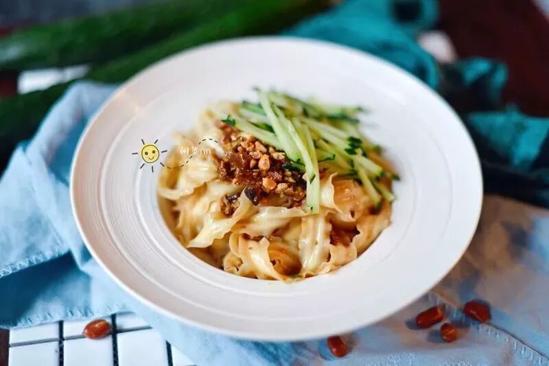 ❼ 黄瓜擦丝,一勺酱,一点花生碎,开吃~