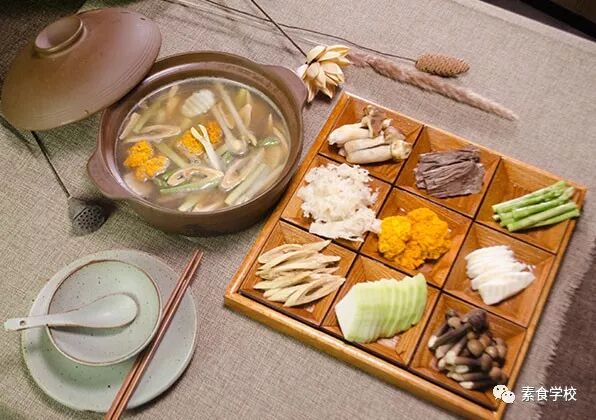 素校素食出品研发中心依据因缘五行等养生原理,精选上百种纯素食材,运用汤煲等烹饪技法出品的罗汉养生斋