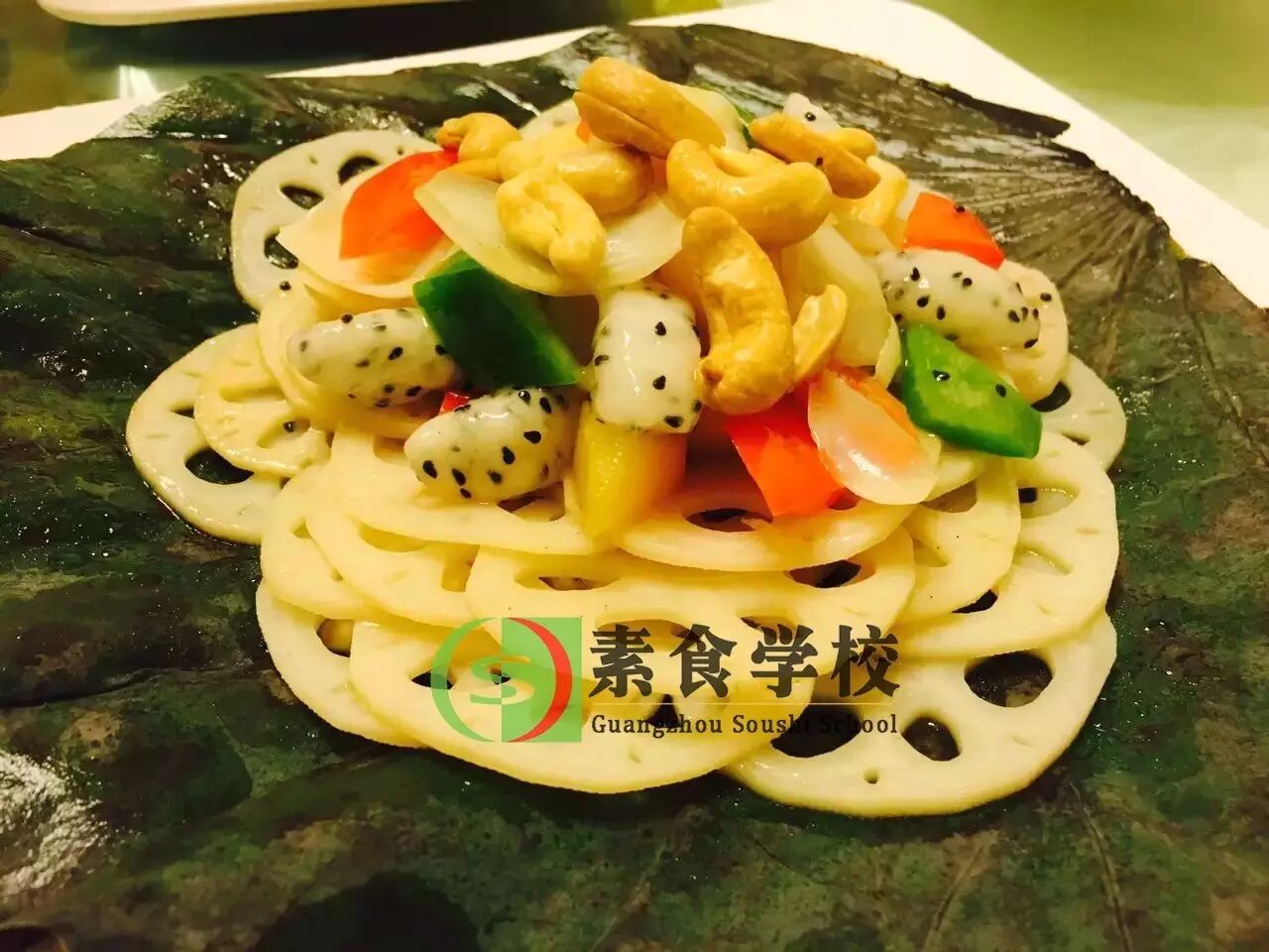 2.烧锅下油,下椒件、藕片翻炒后加适量水,调上盐糖少许加锅盖煮2分钟后上碟,加上火龙果丁和炸好的腰果即可。