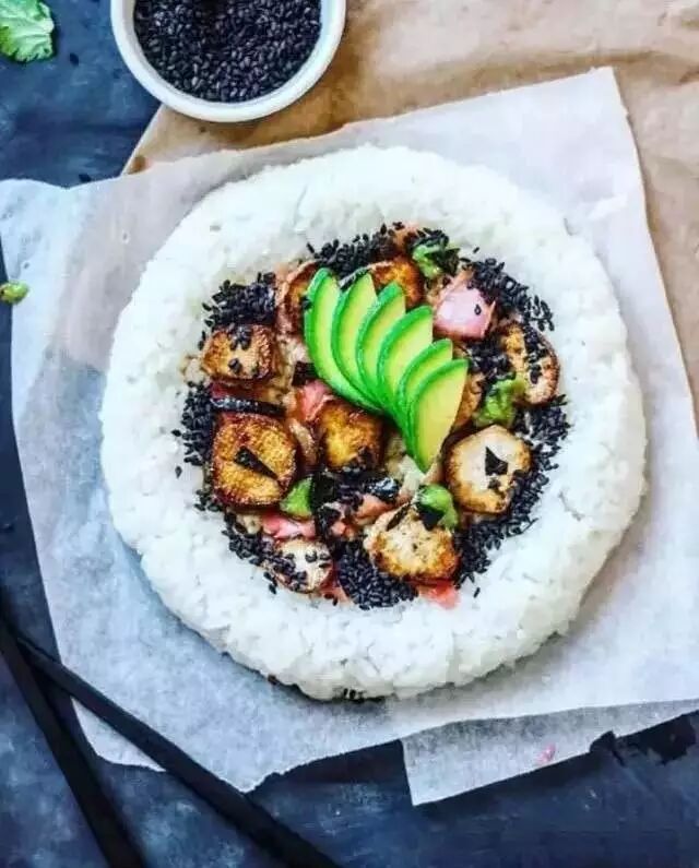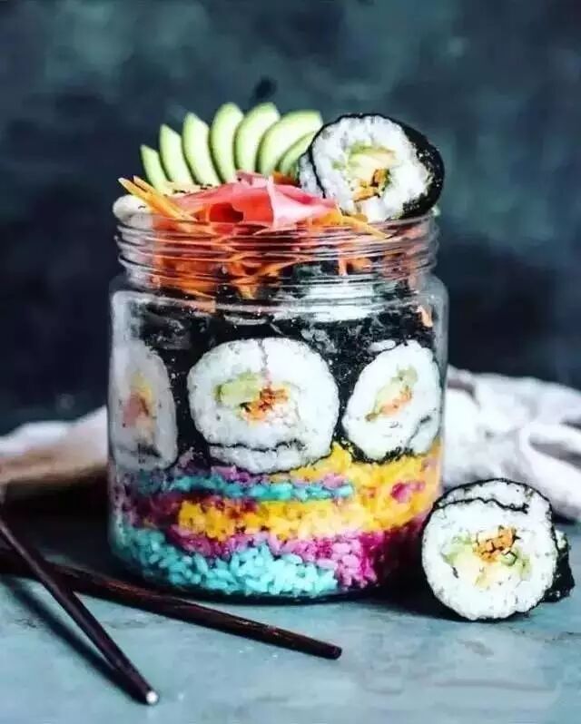 五颜六色的米饭加上喜欢的蔬菜,统统卷在一起,再滚上一层熟芝麻,轻松变身华丽丽的素食彩虹寿司,让你的餐桌又好看又好吃。