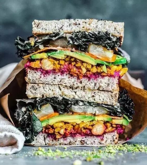 全麦或燕麦面包片包裹着各种喜欢的谷物、杂粮和蔬果,既美味又健康。